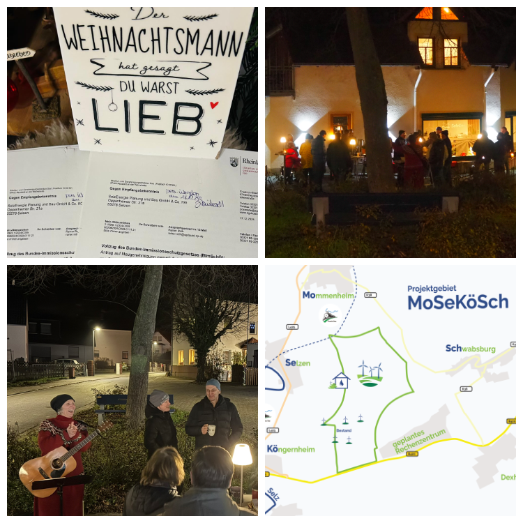 Dank Euch haben wir uns am 17. Dezember sehr weihnachtlich gefühlt. Ihr habt mit uns und Ellen Spiegel in Selzen gesungen. Ein weiteres Highlight kurz vor Weihnachten: Wir haben die Genehmigungen für unsere Anlagen in der Region Mosekösch erhalten.